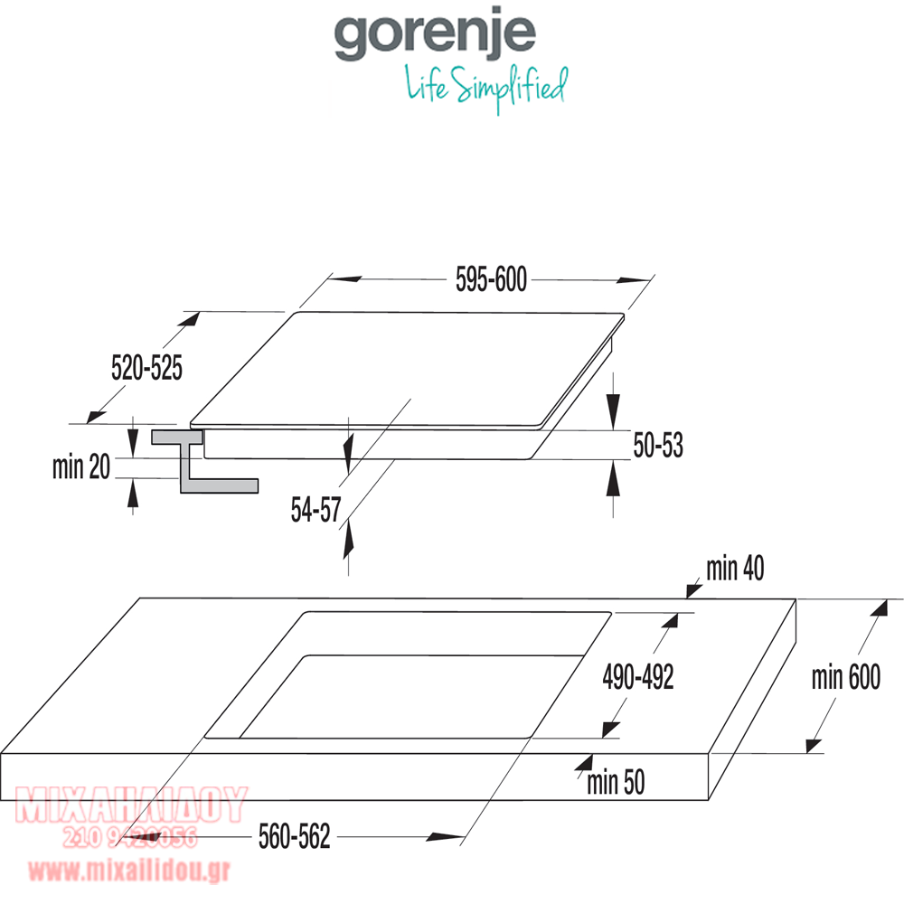 ΦΟΥΡΝΟΥ (59.5 x 59.5 x 56.4) ΕΣΤΙΑΣ (59.5 - 60 x 5.4 - 5.7 x 52 - 52.5) |
