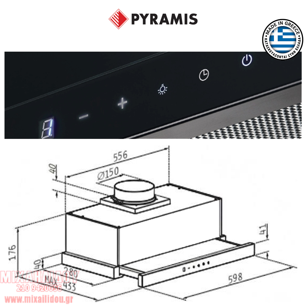 ΑΠΟΡΡΟΦΗΤΗΡΑΣ 60cm PYRAMIS PTC63335BG 60 cm ΣΥΡΟΜΕΝΟΣ - 174030010 ΔΙΑΚΟΠΤΕΣ ΑΦΗΣ ΣΤΗΝ ΜΑΥΡΟ ΚΡΥΣΤΑΛΛΙΝΗ ΜΑΥΡΗ ΠΡΟΣΟΨΗ