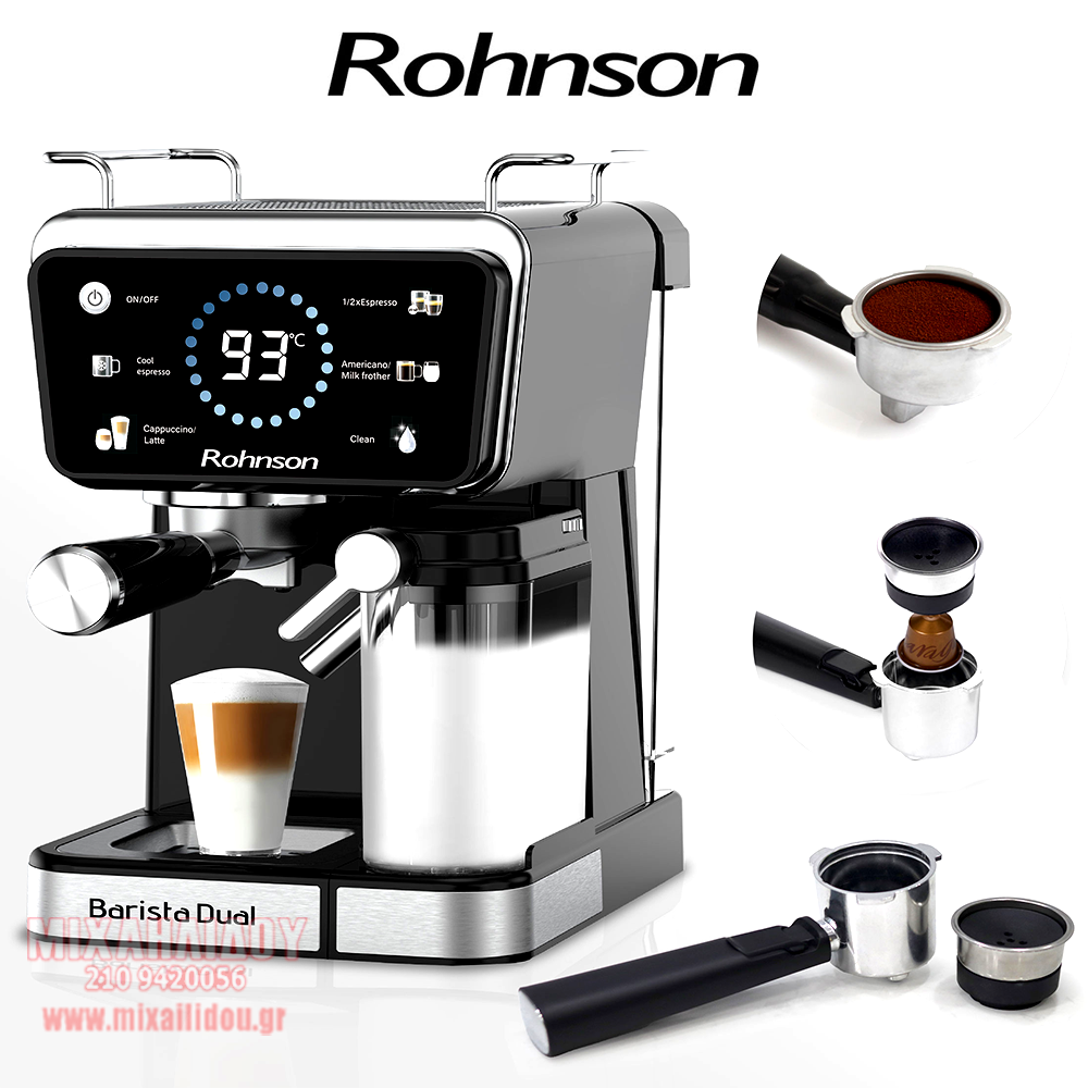 ΜΗΧΑΝΗ ESPRESSO ΚΑΙ CAPPUCCINO ROHNSON R-98082 BARISTA DUAL HOT & COLD ΜΕ ΑΥΤΟΜΑΤΟ ΣΥΣΤΗΜΑ ΔΗΜΙΟΥΡΓΙΑΣ ΑΦΡΟΓΑΛΟΥ