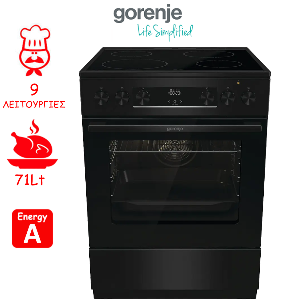 ΚΟΥΖΙΝΑ ΕΛΕΥΕΘΡΗ ΚΕΡΑΜΙΚΗ GORENJE GEC6C40BG - 034076001- 745691 ΜΑΥΡΗ ΕΛΛΗΝΙΚΗ ΑΝΤΙΠΡΟΣΩΠΕΙΑΣ