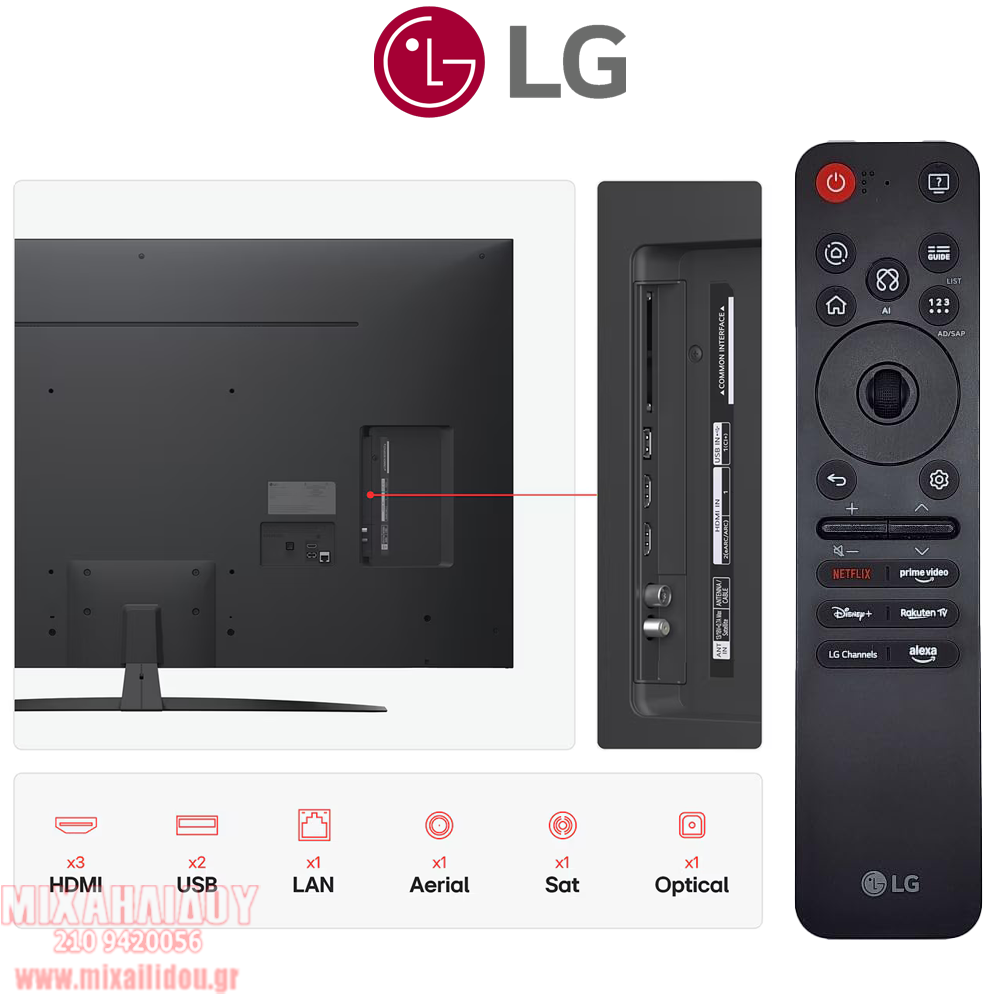 Συνδεσιμότητα | WIFI 5 / 2 X USB 2.0 / 1 X ETHERNET RJ45 / 3 X HDMI V2.0 το 1 ΜΕ eARC / 1 X SATELLITE IN (F-TYPE FEMALE) / 1 X ANTENNA (RF) / 1 x OPTICAL AUDIO OUT / WI-FI DIRECT / BLUETOOTH 5.1 / TV ON ON WITH MOBILE |